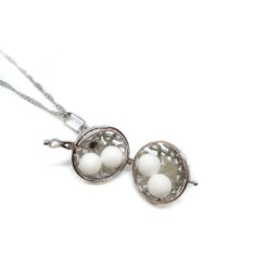 A medál a végtelen motívummal ékesített, belsejében pedig hófehér kagyló gyöngyök bújnak meg.