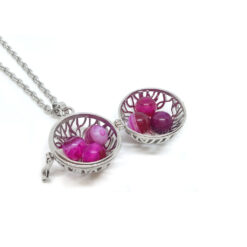 • Magabiztos, domináns és stílusos jellemre utaló Angyalhívó – festett fukszia achát ásvány nyaklánc (életfa)