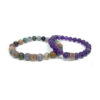 A női karkötőt 8 mm-es piros jadeból, a férfit 8 mm-es ónixból készítettem. A karkötők közepén a főszerepet, az ezüst színű, betűvel díszített köztes kapja, mely Szerelmünk nevének kezdőbetűjét jelöli.