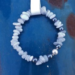 • Kommunikációt támogató, akaraterőt erősítő – kalcedon, tenyésztett gyöngy ásvány karkötő
