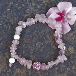 Lelki egyensúlyt biztosító, múltbéli traumákat oldó – rózsakvarc, hókvarc ásvány karkötő