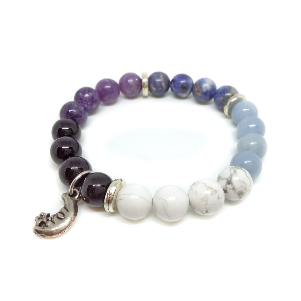Manipulációtól óvó, negatív hatást megszüntető, belső egyensúlyt elősegítő, önértékelést támogató, méregtelenítő – fekete turmalin, howlit, angelit, szodalit, lepidolit ásvány karkötő