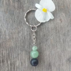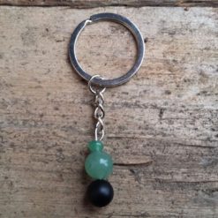10 mm-es matt fekete ónixból, 10 mm-es és gömbölyített aventurinból készítettem a kulcstartót.